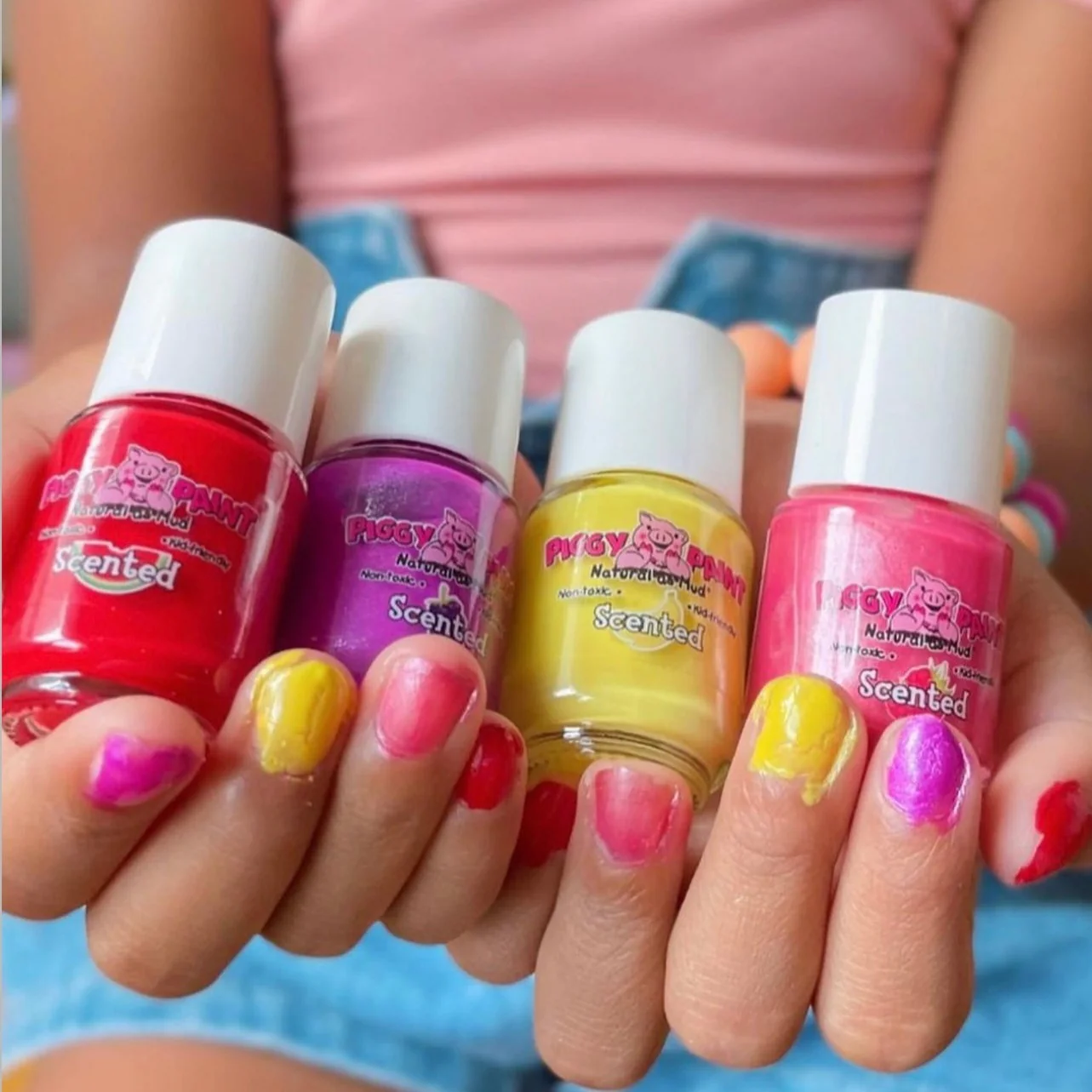 Piggy Paint Scented Nail Polish is the same Non-toxic Piggy Paint formula – but with extra fun! Enjoy the yummy scents long after the polish is dried. This Advanced, Water-based formula Dries Hard – and Doesn’t Wash or Peel off. Plus, it’s Cruelty-free, Vegan, and Safe for all ages – even babies & toddlers! Trusted by parents and Created by a mom, Piggy Paint is the Premium nail polish brand made for Kids. Flavorful scents with no overwhelming polish fumes, parabens, or phthalates! Smell the FUN, Not the chemicals!